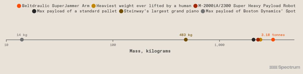 In March, Rise Robotics celebrated the Beltdraulic SuperJammer Arm’s setting of the Guinness World Record for Strongest Robotic Arm Prototype. A collaboration between Rise and the U.S. Air Force, the arm lifted an astonishing 3,182 kilograms, about the weight of an adult female African elephant. Unlike other heavy-lifting machines, the robot uses no hydraulics, only electric power, and it improves efficiency by generating electricity when it’s lowering a load.