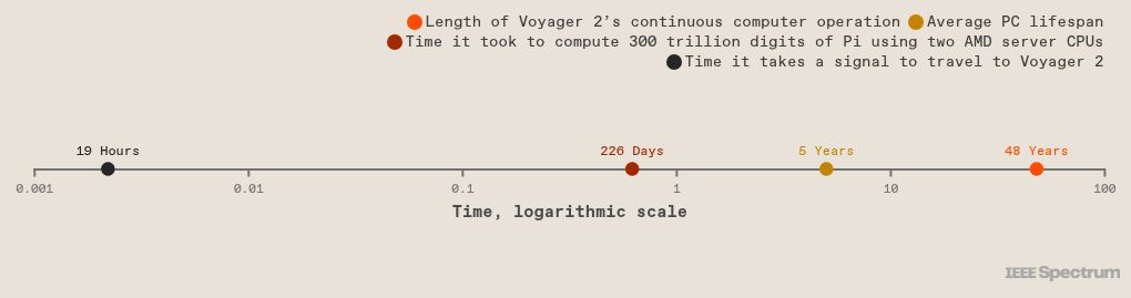 Voyager 1 and its twin space probe, both launched by NASA in 1977, were the first human-made objects to reach interstellar space. But that’s not the only record the spacecraft hold. Voyager 2’s Computer Command System has not been turned off since it first booted up about 48 years ago, making it the longest continuously operating electronic computer.