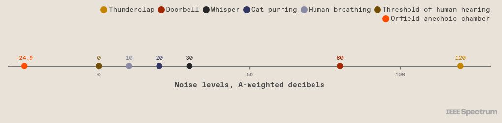 Can you hear your own heartbeat? For most of us, the answer is no—unless you’re standing in Orfield Laboratories’ anechoic chamber, in which case, you might be able to hear the blood rushing through your veins and the sound of your own blinking, too. The chamber in Minneapolis holds the title for quietest place on earth, with a background noise reading of –24.9 A-weighted decibels—meaning that the ambient sound is far below the threshold of human hearing.