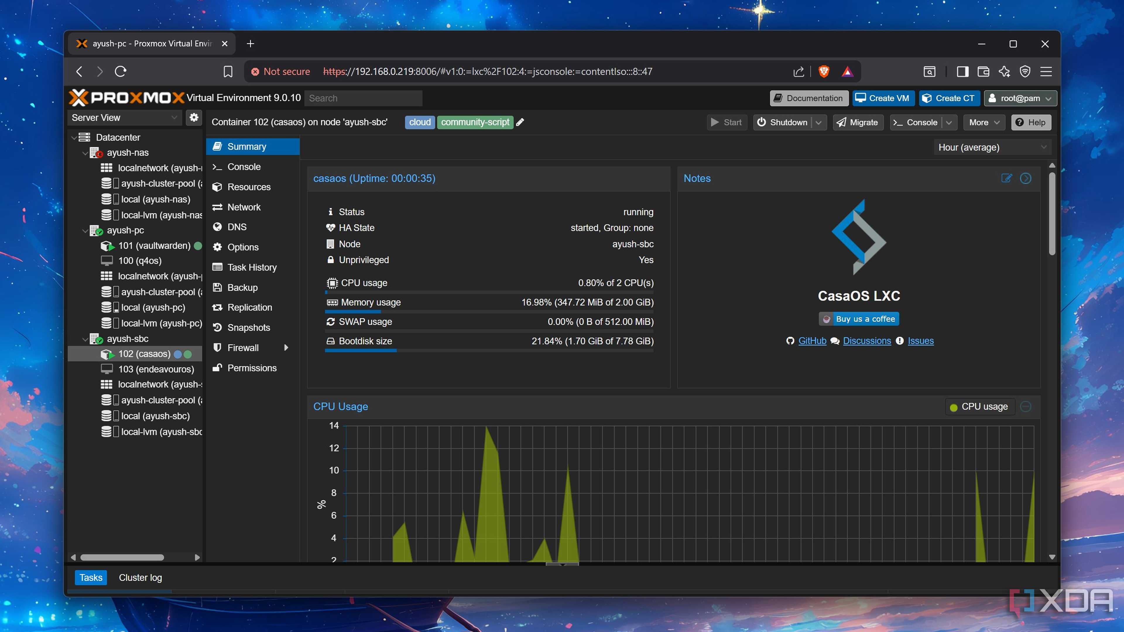 Starting up a home lab means using a lot of containers and/or virtual machines, and the last thing you want is for the host computer to slow down your operations when you’re using those services and VMs. Thankfully, Proxmox is so light it could run on a 2010 potato. It only requires a 64-bit Intel or AMD processor and 2GB of RAM for its basic services in real-life scenarios, though you can theoretically run it on as little as 1GB for testing purposes.