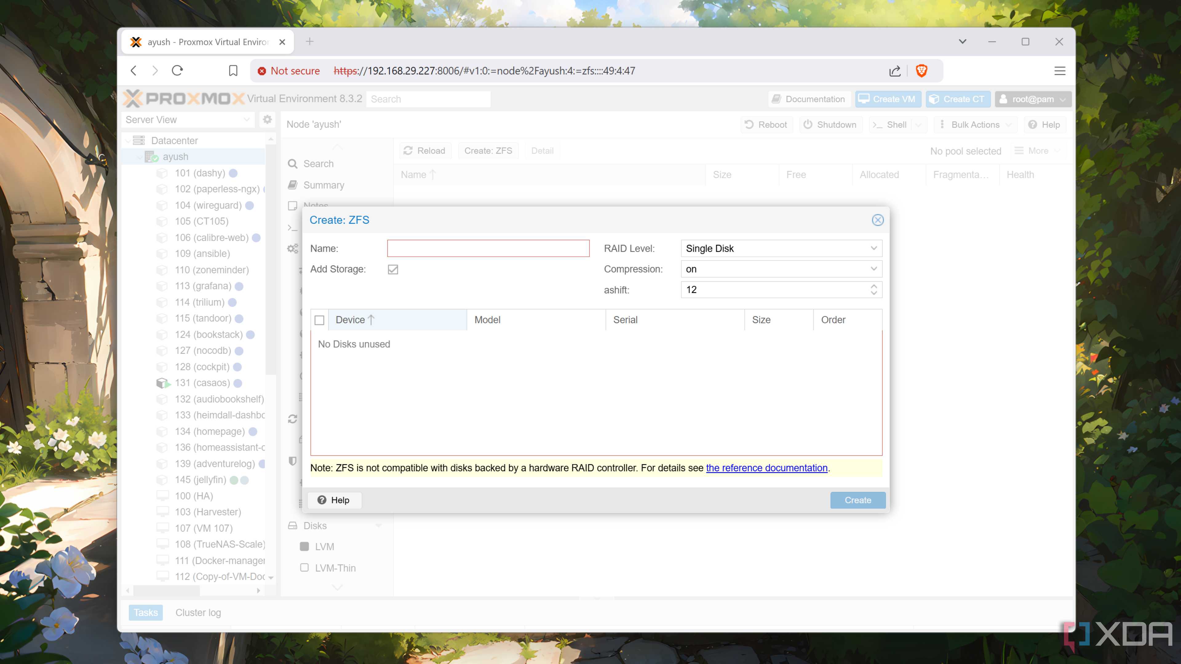 ZFS also comes with benefits regarding RAID support, going so far as allowing you to mirror the boot drive for Proxmox itself. That means if you have a disk failure on the drive Proxmox lives, you can keep using it just fine and swap the broken drive without starting all over again.