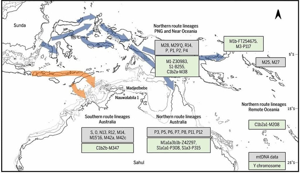 These genetic signatures were drawn from Indigenous Australians, Papuans, and neighboring island populations across the western Pacific and Southeast Asia. The data paints a clear picture of two waves of migration, showing that there were two groups traveling on two different routes, around the same time.